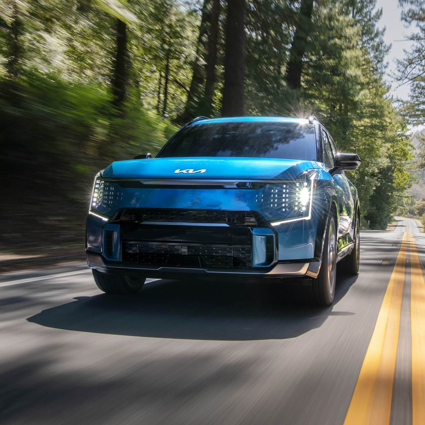 Whether it’s urban excursions or weekend adventures, the near-instantaneous response of Kia EV9’s all-electric motor offers a powerful driving experience that puts you in charge. Confidently embrace the road ahead with available all-wheel drive and high ground clearance.