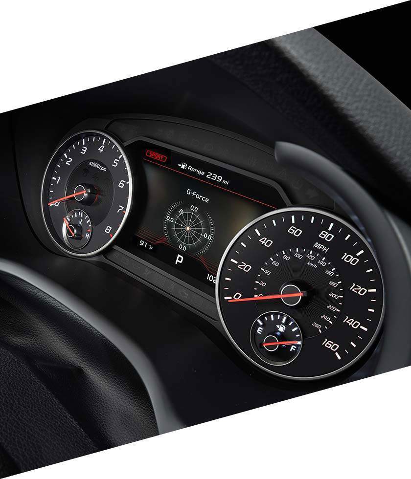 Intimate yet expansive. Classic yet modern. The Stinger’s aircraft-inspired interior marries simplicity with substance to give you a sleek cockpit rich with comfort-focused amenities and lowered seating for enhanced connection to the road. It’s the evolution of gran turismo, beautifully realized.